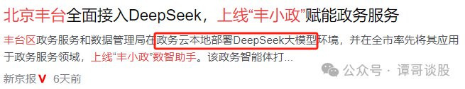 自2月以来,北京、广东、江苏、内蒙古、江西等多地政府宣布,其政务服务系统已接入DeepSeek系列大模型。例如,北京市丰台区政务和数据局完成了政务云本地部署DeepSeek大模型环境,并上线了“丰小政”数智助手。